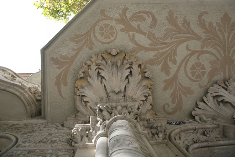 Edifici modernista, ubicat dins el Quadrat d’Or de l’Eixample, que es caracteritza per una façana amb una gran tribuna central. Els balcons, individuals i dobles, adquireixen moviment gràcies a les baranes sinuoses de ferro forjat, aquelles baranes a què Montserrat Roig es referia de la següent manera a Digues que m’estimes encara que sigui mentida: “També em vaig avesar a la diversitat dels dibuixos dels ferros dels balcons. […] A mi m’agradava contemplar-los –ben aviat em vaig acostumar, a l’Eixample, a mirar cap amunt, i pensava que l’originalitat de cada ferro amagava una vida diferent de les altres més enllà del balcó. Darrera de cada porticó, hi havia una història per a narrar”. Actualment, al pis principal hi trobem l’associació Amics de la Unesco Barcelona (AUB), que promou la justícia, la llibertat i la pau al món.