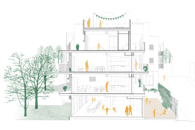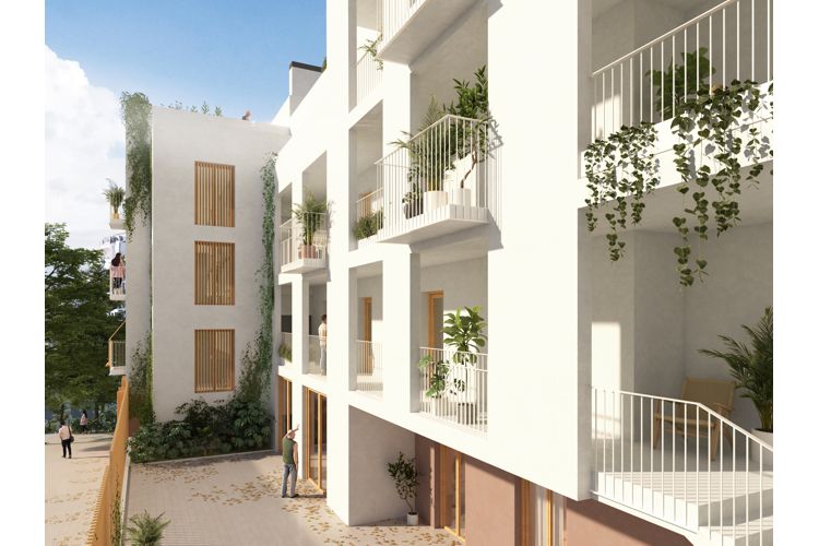L’edifici, dissenyat amb criteris de sostenibilitat i amb una arquitectura que busca integrar-se amb l’entorn, connecta el carrer amb uns horts públics a través d’un volum permeable i obert. Es construeix al voltant d’un gran pati central, que actua com a espai de trobada i accés als habitatges, i incorpora espais comuns, com bugaderies, sales d’ús compartit, una coberta activa i un aparcament per a bicicletes. Amb diverses tipologies d’habitatge que responen a formes de vida diverses, el projecte vol ser una eina per garantir el dret a l’habitatge, fomentar la vida comunitària i promoure un model urbà més just i sostenible.