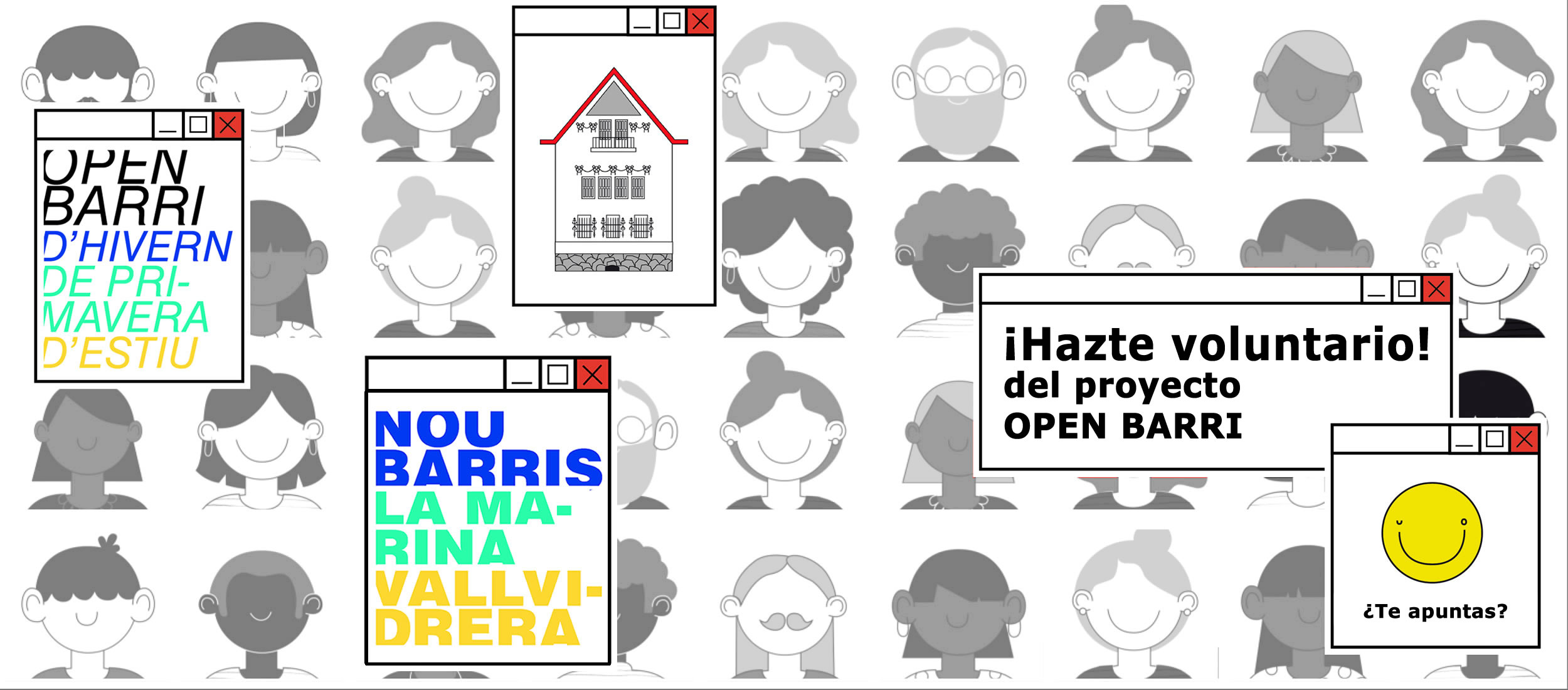 Open Barri cuenta con un buzón de pensamiento donde podrás compartir tus impresiones y reflexiones sobre cuatro áreas que hacen barrio: cultura, arquitectura y sostenibilidad, historia del barrio e identidad, y festival 48h Open House Barcelona.