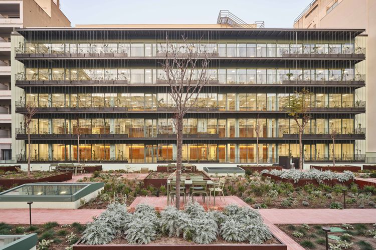 La propuesta, con un enfoque que armoniza arquitectura y paisaje, consigue renovar un inmueble de oficinas representativo y promover al mismo tiempo la recuperación del espíritu y el carácter identitario del Plan Cerdà de 1859, símbolo del principio igualitario del urbanismo de Barcelona.