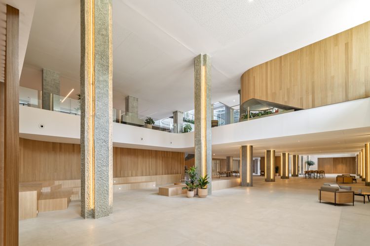 La antigua sede de Telefónica recupera su vida con una intervención integral que transforma el imponente volumen en un edificio abierto, poroso y habitable. La reforma recupera la luz y las visuales, sustituyendo las pantallas opacas por tribunas de vidrio, reinterpretando el espíritu de Mitjans con criterios contemporáneos. La arquitectura se expande hacia el exterior con terrazas y una nueva fachada solar que estructura el edificio desde la avenida de Roma como un gran lienzo urbano. Un proyecto que pone en el centro a las personas, la sostenibilidad y la relación con el entorno.