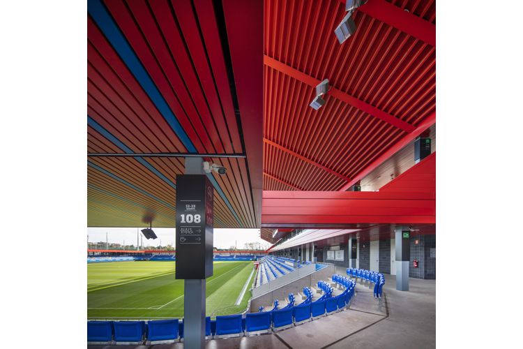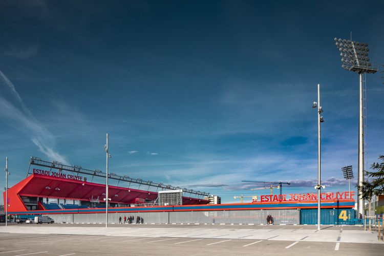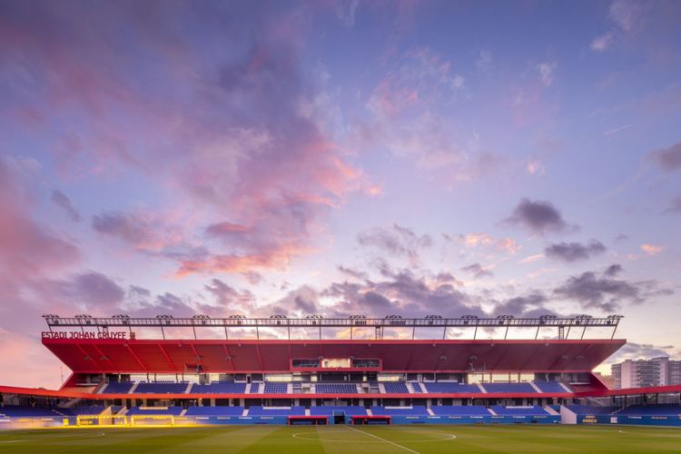 Con capacidad para seis mil espectadores, el Estadio Johan Cruyff es mucho más que un campo para equipos de formación: resulta un equipamiento de alto nivel, diseñado para cumplir con los requisitos UEFA de categoría III y convertirse en un referente de arquitectura deportiva moderna. El proyecto surge de una asimetría funcional –una gran tribuna con servicios técnicos y zonas VIP– convertida en el gesto formal que define la imagen icónica del conjunto.
