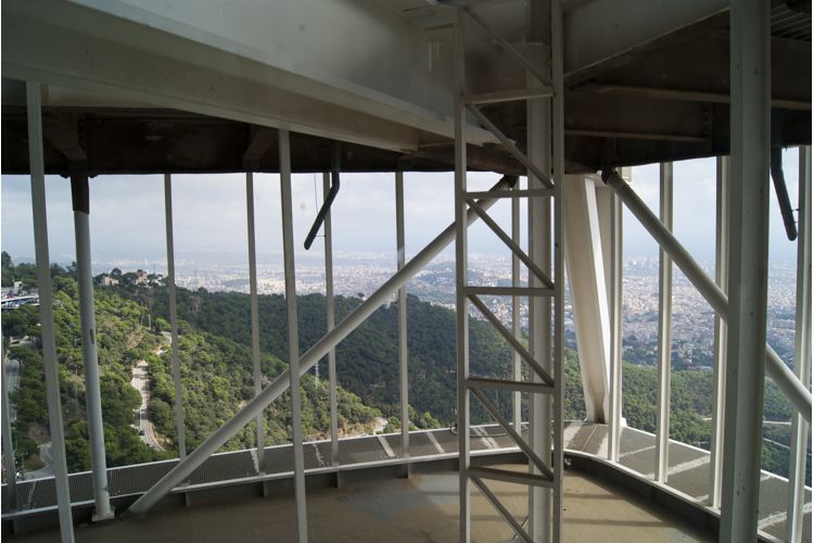 La torre, de 288 m de altura, es el elemento más emblemático de la sierra de Collserola, telón de fondo y límite de Barcelona. El esbelto fuste se encuentra con tres puntales colocados a 120º uno respecto al otro y con otros tres tirantes postensados que se anclan en la montaña. El fuste de hormigón sostiene unos forjados modulares en forma de triángulo equilátero con los lados curvados.