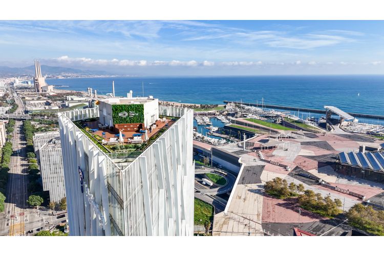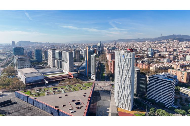 El edificio cuenta con un auditorio con luz natural, una espectacular terraza (Diagonal Sky), un coworking propio (Next Floor), salas de reuniones y gimnasio, entre otros espacios.
